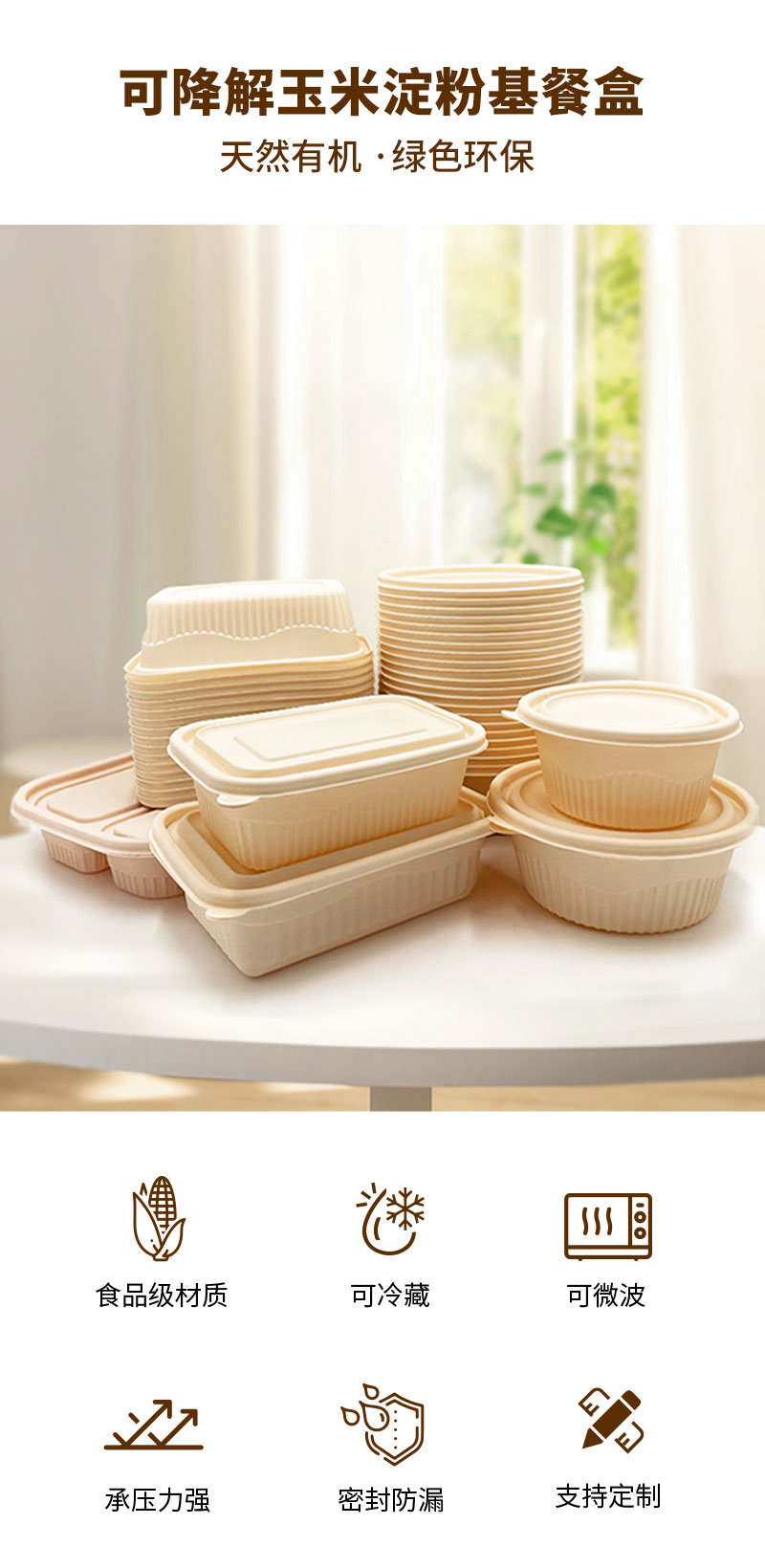 可降解餐盒 玉米淀粉基餐盒 酒店打包盒 生物基打包盒 密封外賣打包盒 可加熱打包盒 咔樂芙一次性餐盒